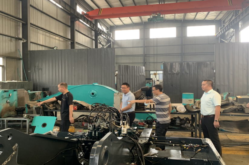2021年8月24日匯發合錦公司石總和劉總代表我公司接待了由四川省報廢機動車回收拆解行業協會秘書長魯勝、神鋼建機(中國)有限公司市場統籌本部特種機銷售課吳鰲和四川眾注泰再生資源回收有限公司法人梁勤中等一行領導蒞臨我公司參觀、指導和交流關于神鋼改造解體機的工作。